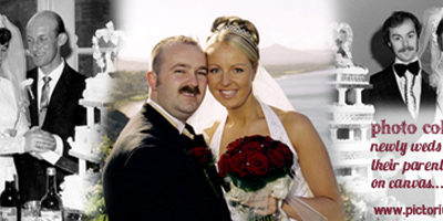 Mary was looking for a unique and personalised photo collage to take pride of place in her home. She dropped into us for a free consultation and we had a conversation about creating a photo collage. We agreed to use photos from her own wedding and combine these with her parents on their wedding day and her now parents-in-law on their wedding day!